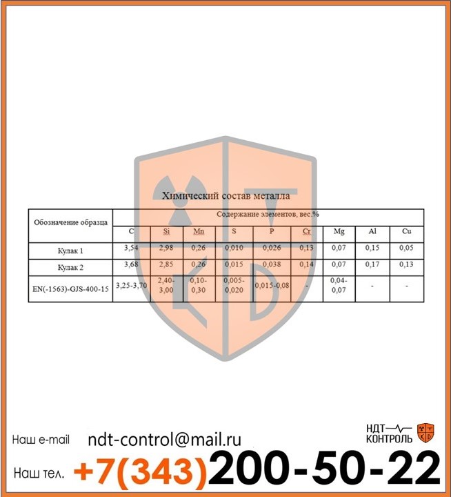 Лаборатория неразрушающего контроля «НДТ-контроль» проводит эффективный анализ состава металла в Георгиевске. Предприятие располагает всем необходимым для высокоточного определения химического состава, количественного содержания и качественных свойств веществ, примесей и элементов, содержащихся в металлических сплавах и сталях. Эксперты компании гарантируют полный контроль над качеством металлических изделий, а также детальную экспертизу состава металла. Диагностика методами неразрушающего контроля позволяет не только вынести заключение о качестве, составе и свойствах металлов, но выявить причины появления дефектов или неисправностей на металлических конструкциях и изделиях из стали. Узнать подробную информацию о методах НК, стоимость анализа химического состава металлов, а также перечень услуг, предоставляемых лабораторией «НДТ-контроль» можно узнать на сайте, или у консультантов компании по указанным в разделе «Контакты» телефонам.